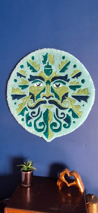 Green man hand tufted rug or wall art